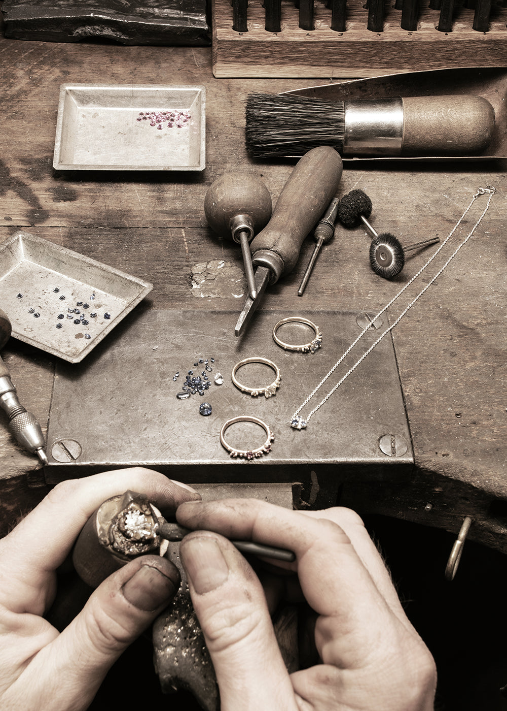 Our colored gemstones come from transparent sources. They are cut exclusively by our partner in Idar Oberstein. In this way, we support and preserve local craftsmanship.